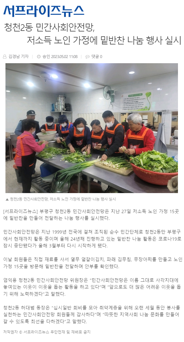 청천2동 민간사회안전망 저소득 노인가정 밑반찬 나눔 행사 5월 봉사활동 페이지 정보 작성자 최고관리자 작성일23-05-04 13:36 조회29,672회 댓글0건 관련링크 본문 청천2동 민간사회안전망 저소득 노인가정 밑반찬 나눔 행사 5월 봉사활동 댓글목록 등록된 댓글이 없습니다. 이전글 다음글 목록